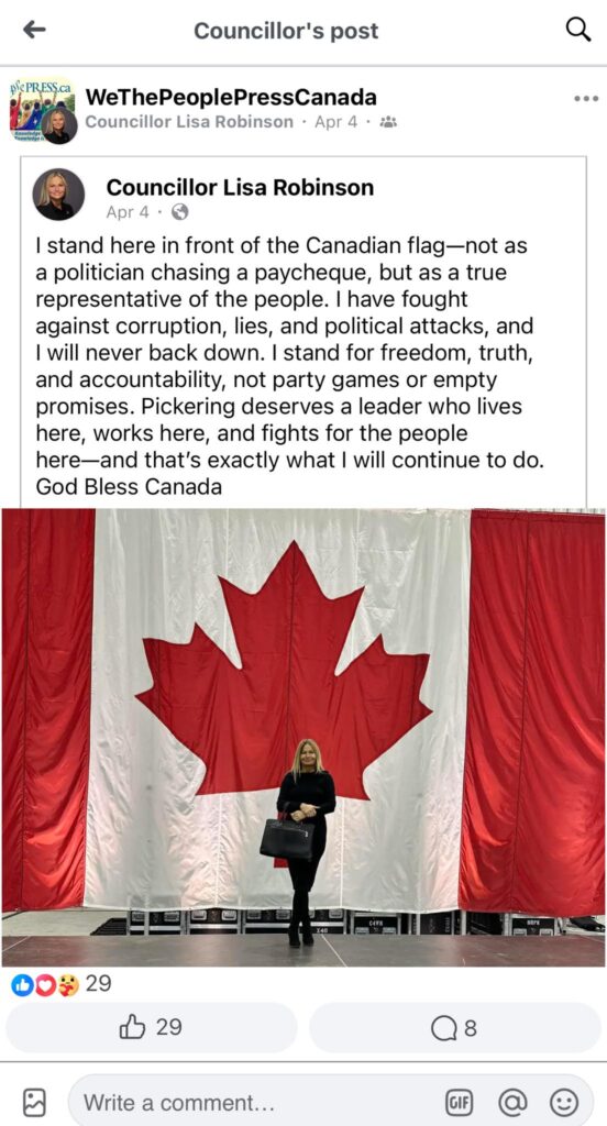 Have a look at our previous blog post here: Lisa Robinson and the Manufactured First Nation – Good Government for Pickering